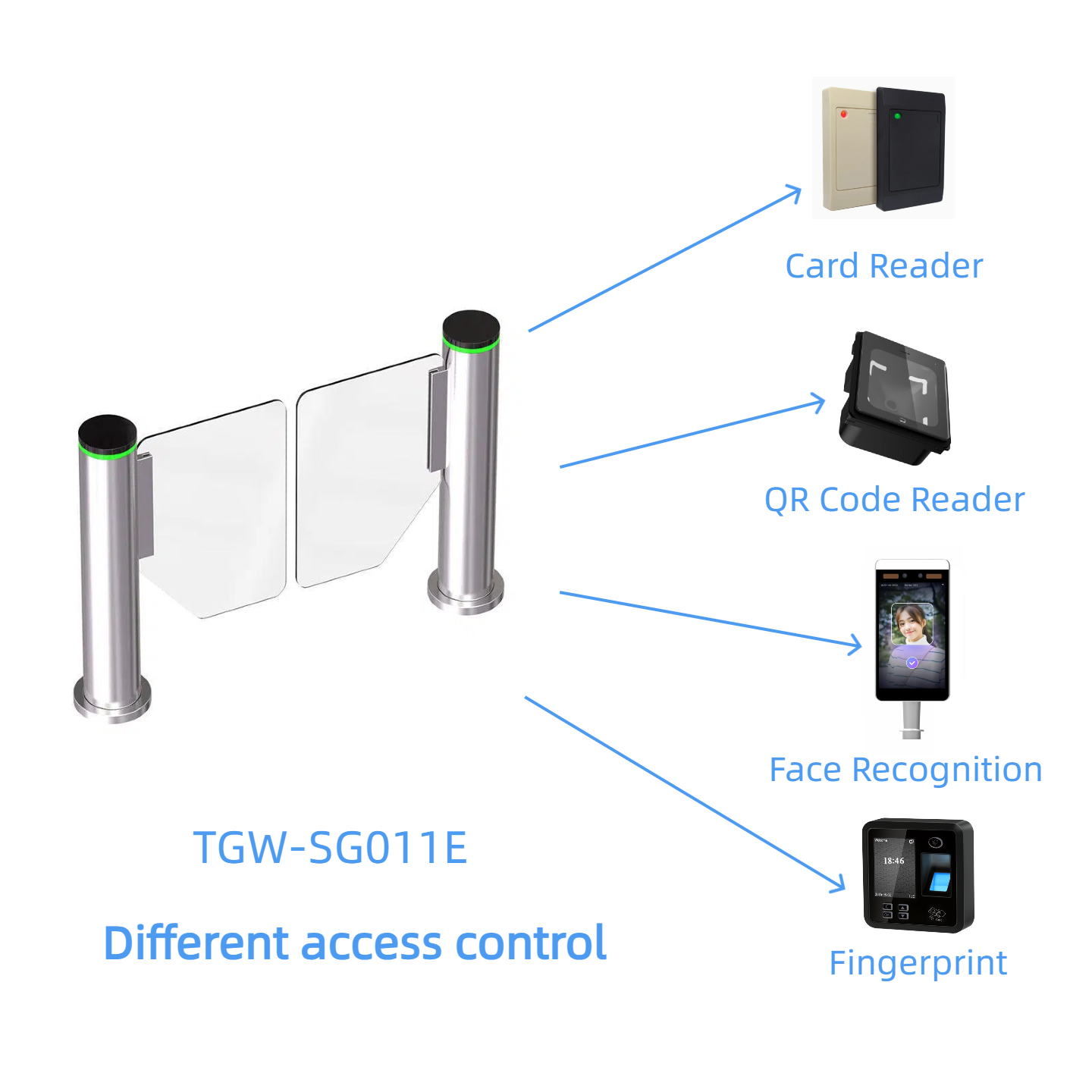 Each opening allows one person to pass through. It can be integrated with access control systems (e.g., RFID, fingerprint, face recognition) for automatic access management.